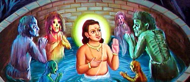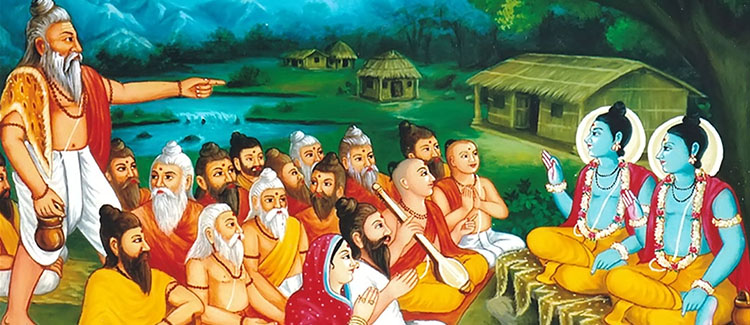 Roaming thus, Nilkantha Varni arrived in a city. Those were the rainy days. Varni encamped on a river bank. There he began to enchant loudly the verses [chopai] from the Ramayan written by Tulsidas [Rama Charit Manas]. This loud enchantment of the Ramayan mixed with the loud thunders of the rainy clouds...