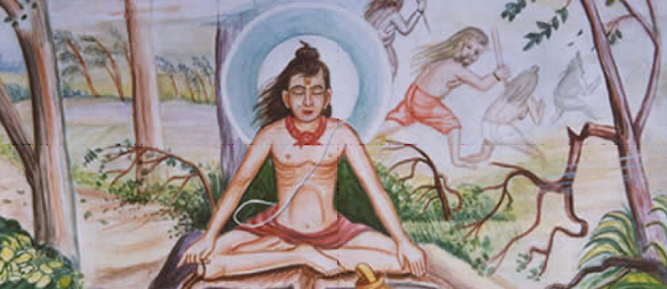 About 200 meters away a Youth with loin-cloth was spreading his deer-hyde on a raised platform around a huge tree. The fury of the winter-wind had silenced all the sounds. The Mahant just rushed to that Boy, Who seemed to be in His adolescence. He caught the young Boy with his hand and said: "Come on, good Boy. This is the place for tiger to sit at night, not for men. There is dense jungle all...