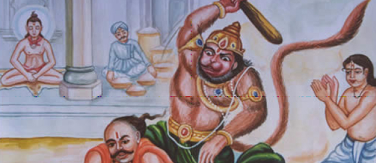 Bhim was very much proud of his strength. He thought while going, “There is no other such Bhim as strong as I in the whole world.” Hanumanji knew about this pride of Bhim. He had a great attachment for Bhim. He considered Bhim his younger brother. So he thought that it was not proper for Bhim to be proud of his strength....